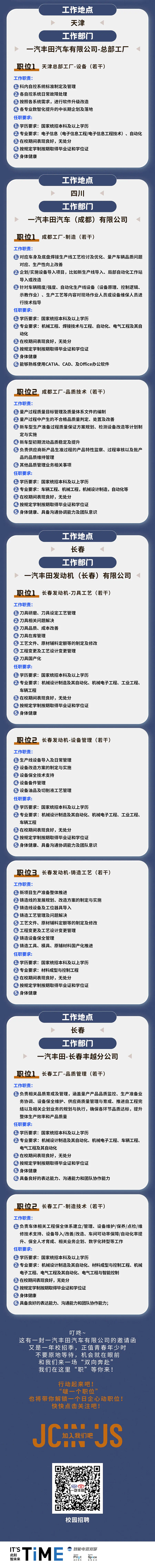 中国一汽旗下一汽丰田汽车有限公司2025校园招聘公告